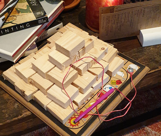 A music instrument for two, to be played without touching